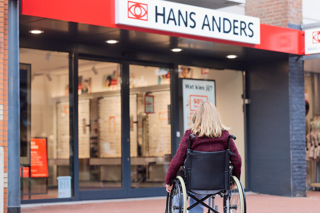 Chez Hans Anders, nous pensons que les soins oculaires et auditifs doivent être accessibles à tous. C'est pourquoi nous travaillons activement à l'amélioration de l'accessibilité de nos magasins aux fauteuils roulants. Nous prenons des mesures pour lever les obstacles, faire de l'accessibilité aux fauteuils roulants une priorité dans les rénovations et les nouveaux magasins, et former nos collègues pour qu'ils puissent aider au mieux les clients en fauteuil roulant.