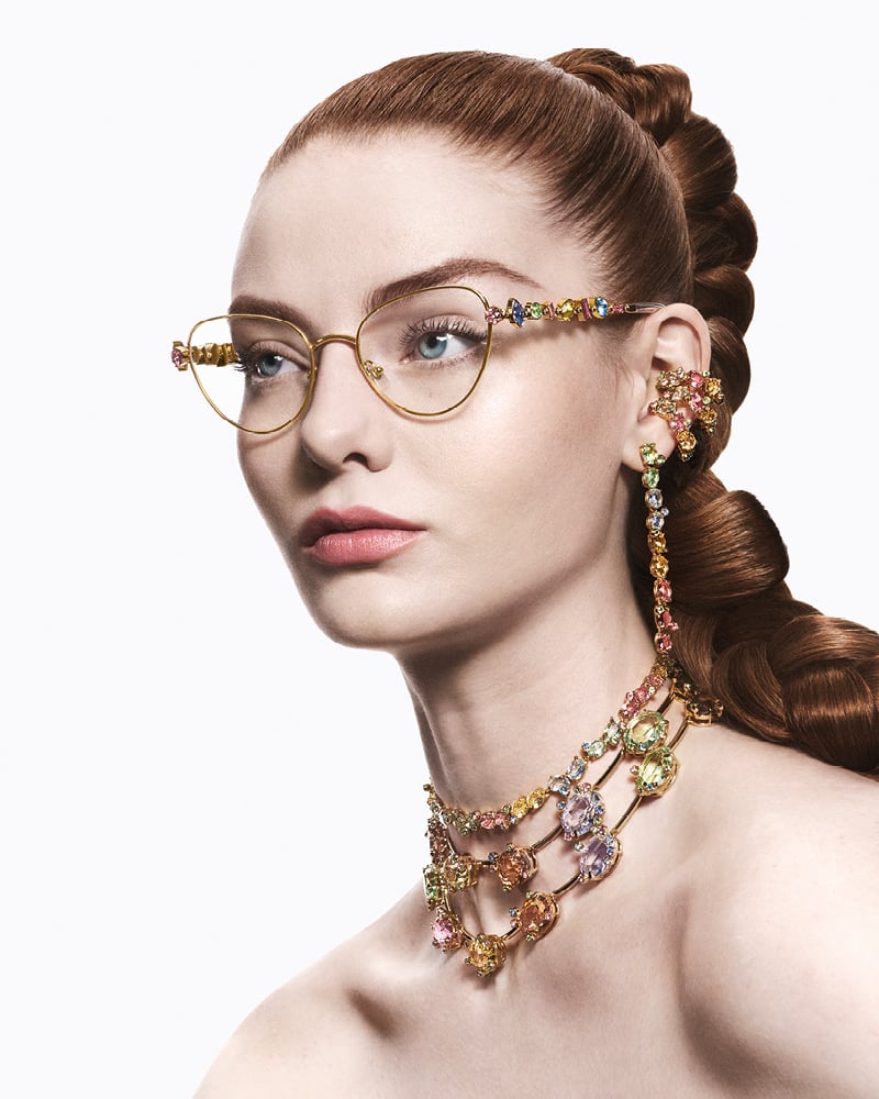 Deze collectie is geïnspireerd op de iconische sieraden van Swarovski. Deze brillen combineren stijl en elegantie met een futuristisch randje. De zorgvuldig geplaatste kristallen geven elk montuur een luxueuze uitstraling die echt opvalt. Een perfecte mix van moderne klasse en een sprankelend accent. Perfect voor wie op een stijlvolle, verfijnde manier wil opvallen.